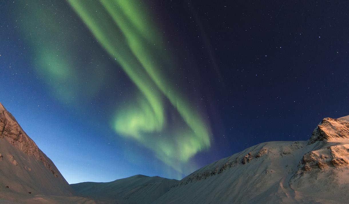 Vi vil forlate Longyearbyen og utforske en av Adventdalens sidedaler. Her får man sjansen til å oppleve nordlys i et urørt arktisk landskap. På veien vil vi stoppe ved vår gamme for å få litt varme fra bålet og guiden vil servere en 3-retter middag mens vi venter på nordlyset.