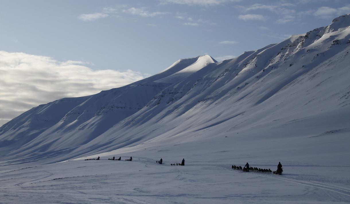 Du blir hentet av guiden og fraktet til Green Dog sin hundegård i Bolterdalen, hvor du får utlevert varme klær for turen. Hundegården ligger 12 kilometer utenfor Longyearbyen, og her får du en grundig instruksjon i å kjøre hundespann, samt hjelp til å sele på hundene før vi kjører av gårde inn Bolterdalen. Bolterdalen er et område med begrenset scootertrafikk. Vi kjører parvis på hvert hundespann slik at én kjører sleden og den andre sitter på. Forrerst kjører guiden, ligeledes med to gjester på sleden.