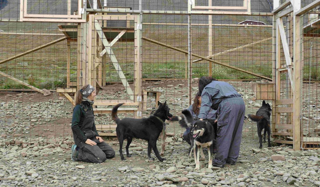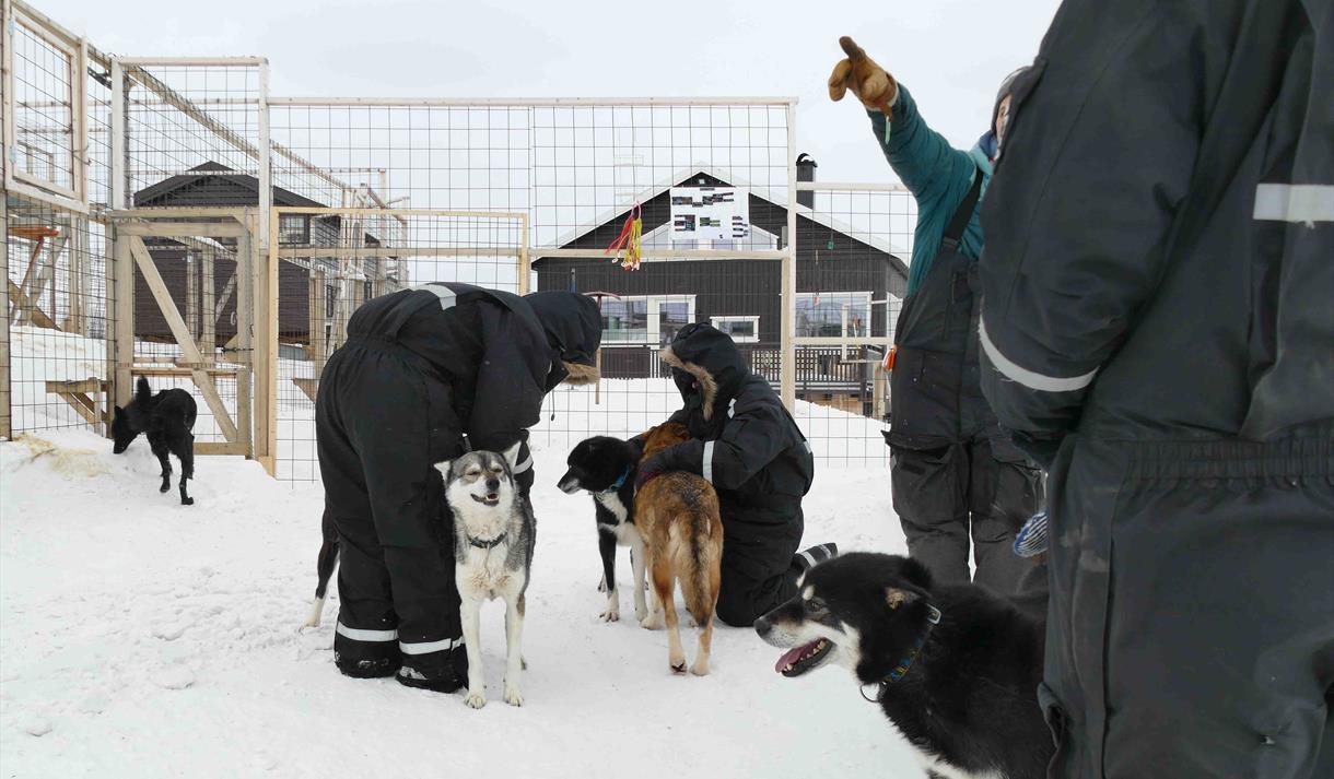 Deretter hilser vi med sledehunder og prater om livet ut i dalen. Maks gange 15 min.