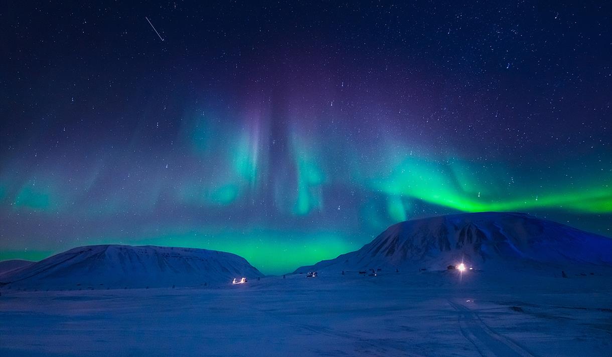 Arktisk stillhet venter når vi forlater Longyearbyens lys og glir inn i mørket, kun opplyst av måneskinn, stjerner, og våre snøscootere. Utforsk historiske kulturminner som den gamle flystripen og flyvrakrester i Adventdalen, med vakker utsikt over Operafjellet og andre bygninger.