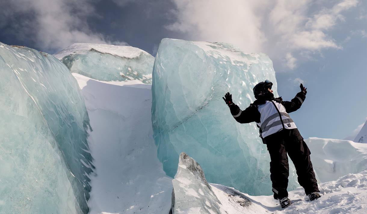 Vi kjører snøscootere gjennom fantastiske daler, over massive isbreer og dit eventyret venter.