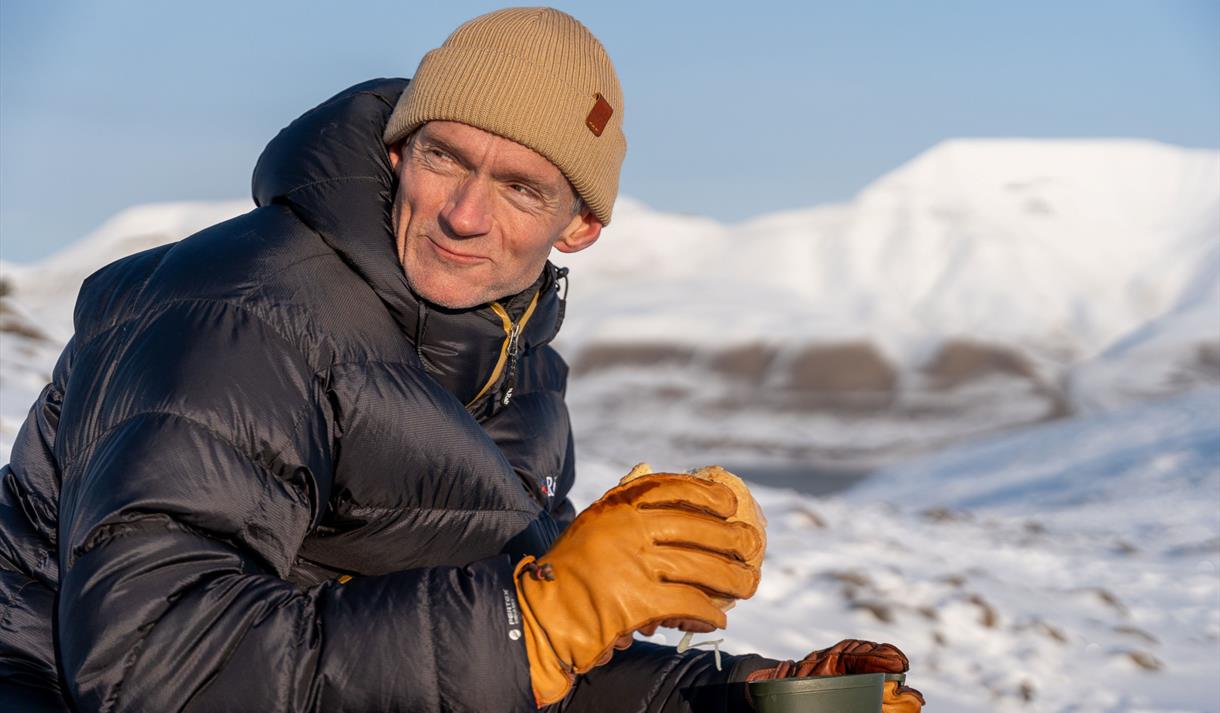 Vi starter turen ved Svalbard Hotell The Vault og tar oss god tid på vei opp til Platåfjellet.
