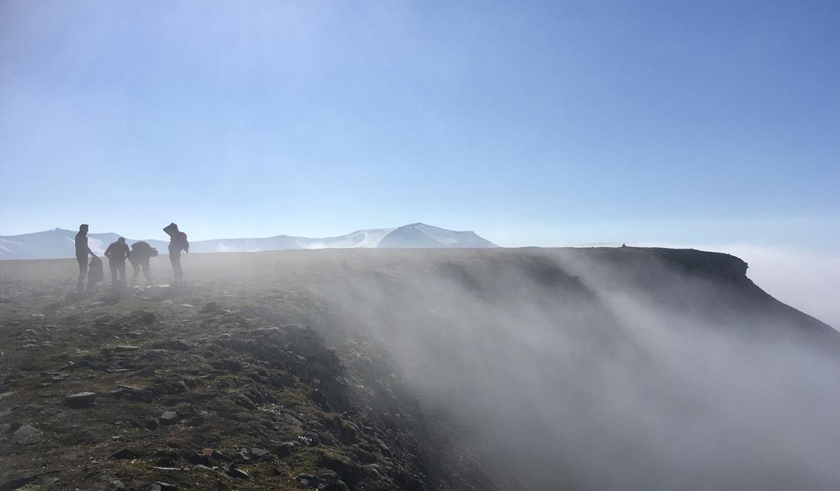 Etter noen kilometer på tvers av et relativt flatt terreng kan vi begynne å vandre oppover mot toppen av platået hvor vi kan nyte en varm lunsj og den fantastiske utsikten over Isfjorden foran oss.