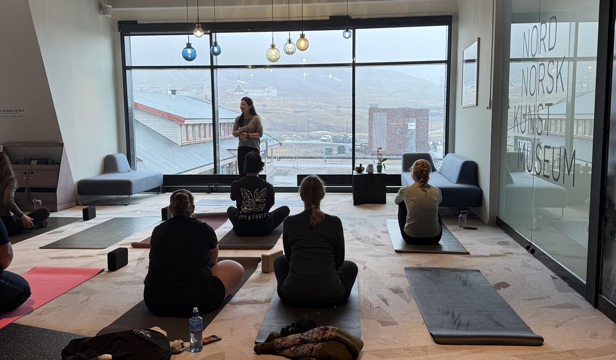 Klassene holdes ukentlig i det rolige galleriet på Nordover, verdens nordligste kunstsenter. Omgitt av slående arktisk-inspirerte verk, blir hver økt en unik blanding av bevegelse, stillhet og sanseopplevelse – dypt forankret i Longyearbyens rå skjønnhet.