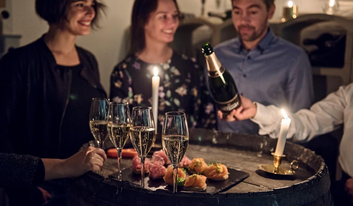 I rommet der gruvearbeiderne hentet sine tilmålte kvoter alkohol, kan du nå ta et lite glass før maten. På bestilling arrangerer vi champagnesmaking. Champagnekartet vårt er innholdsrikt, og omfatter flere flasker av de riktig sjeldne.