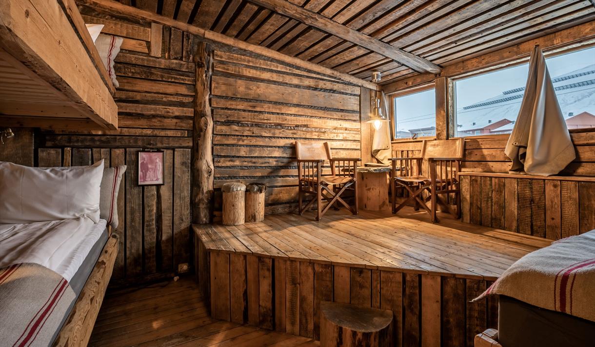 Basecamp Hotel er rustikt innredet med gjenbruksmaterialer og historiske elementer fra fangstmannslivet.