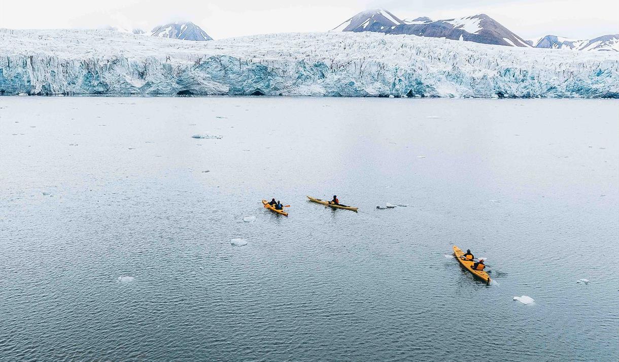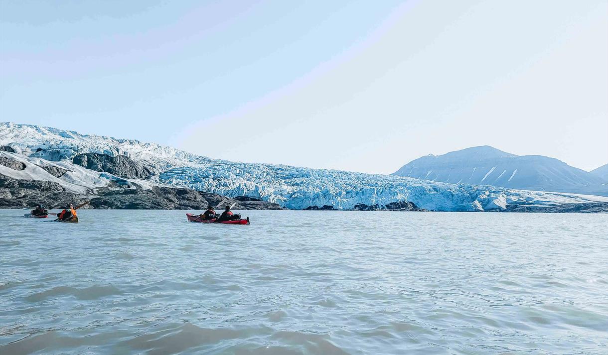 Vi padler tett på den enorme Nordenskiöldbreen. Kanskje ser vi isfjell drive forbi eller seler hvile på isen. Etter en spektakulær dag på fjorden fortsetter vi til Brucebyen hvor vi skal sove en siste natt under arktisk himmel.