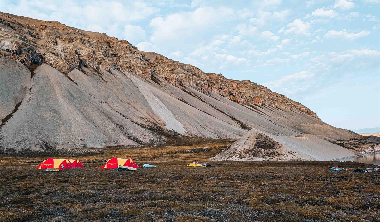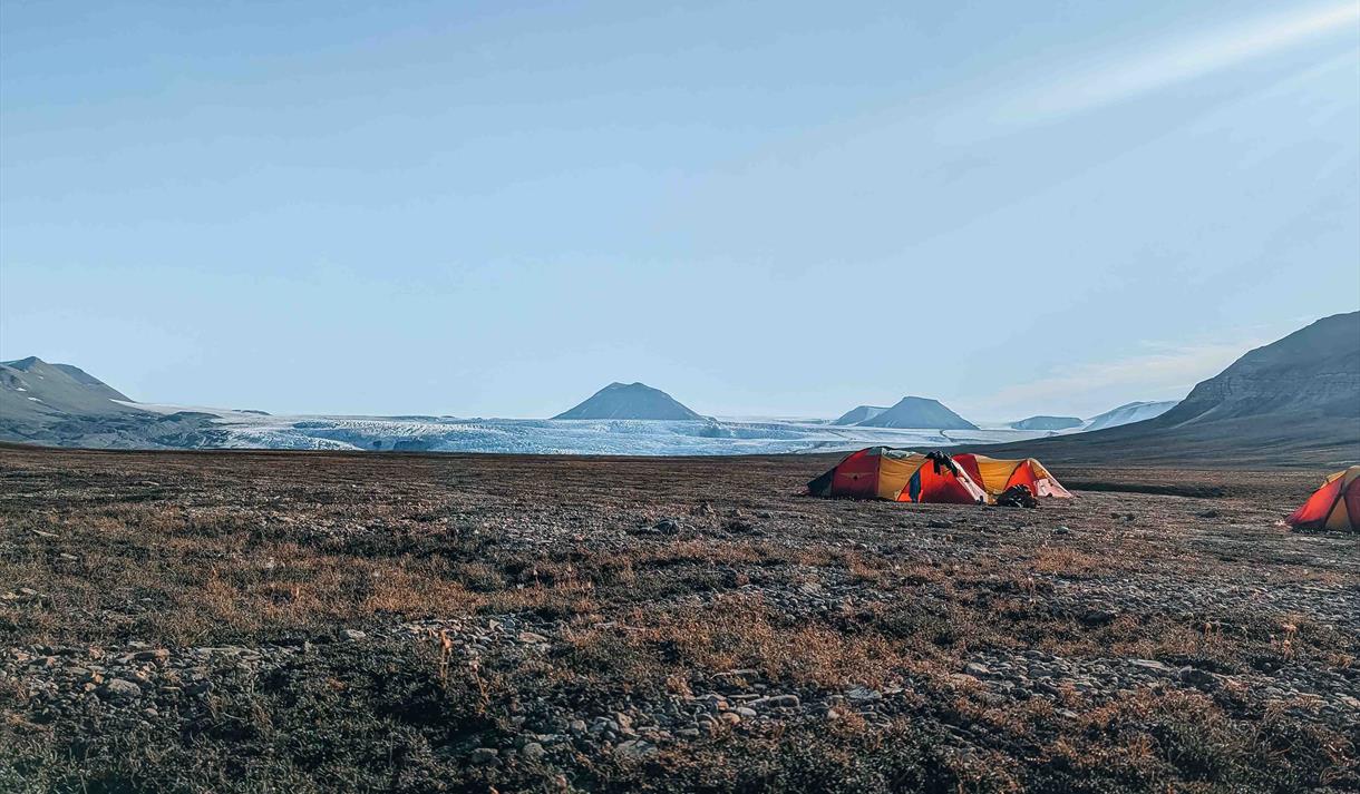 - Slå leir under midnattssolen med utsikt mot isbreen