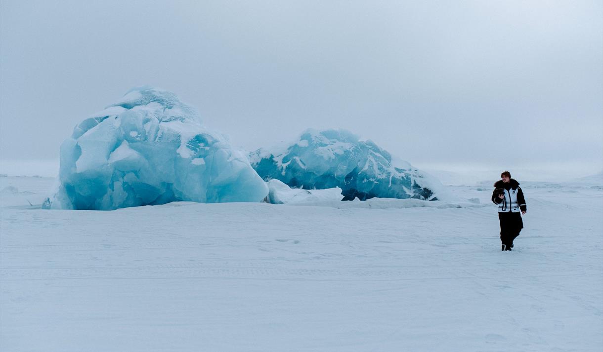 Underveis får du opplevelser som isklatring, grottebesøk og isfiske, i tillegg til lange etapper gjennom mektig arktisk natur.