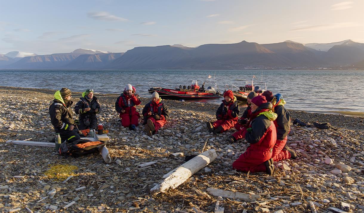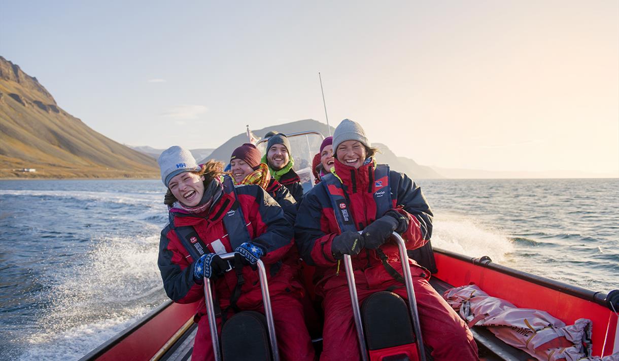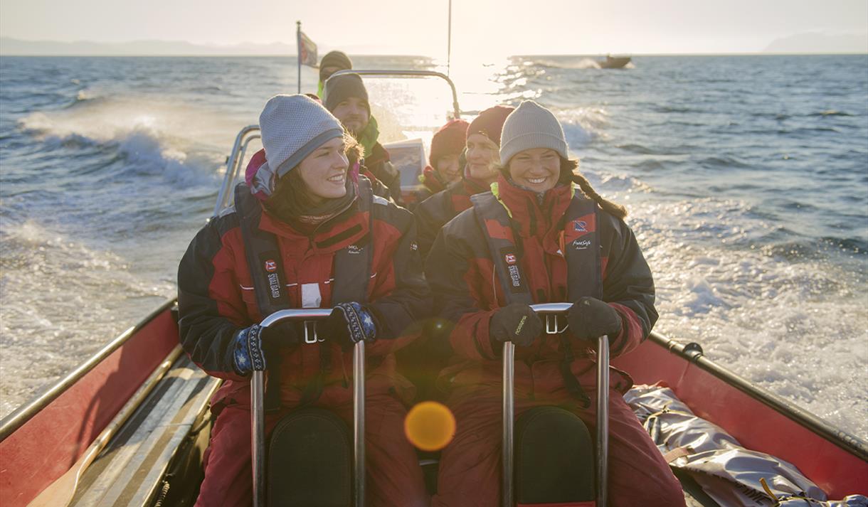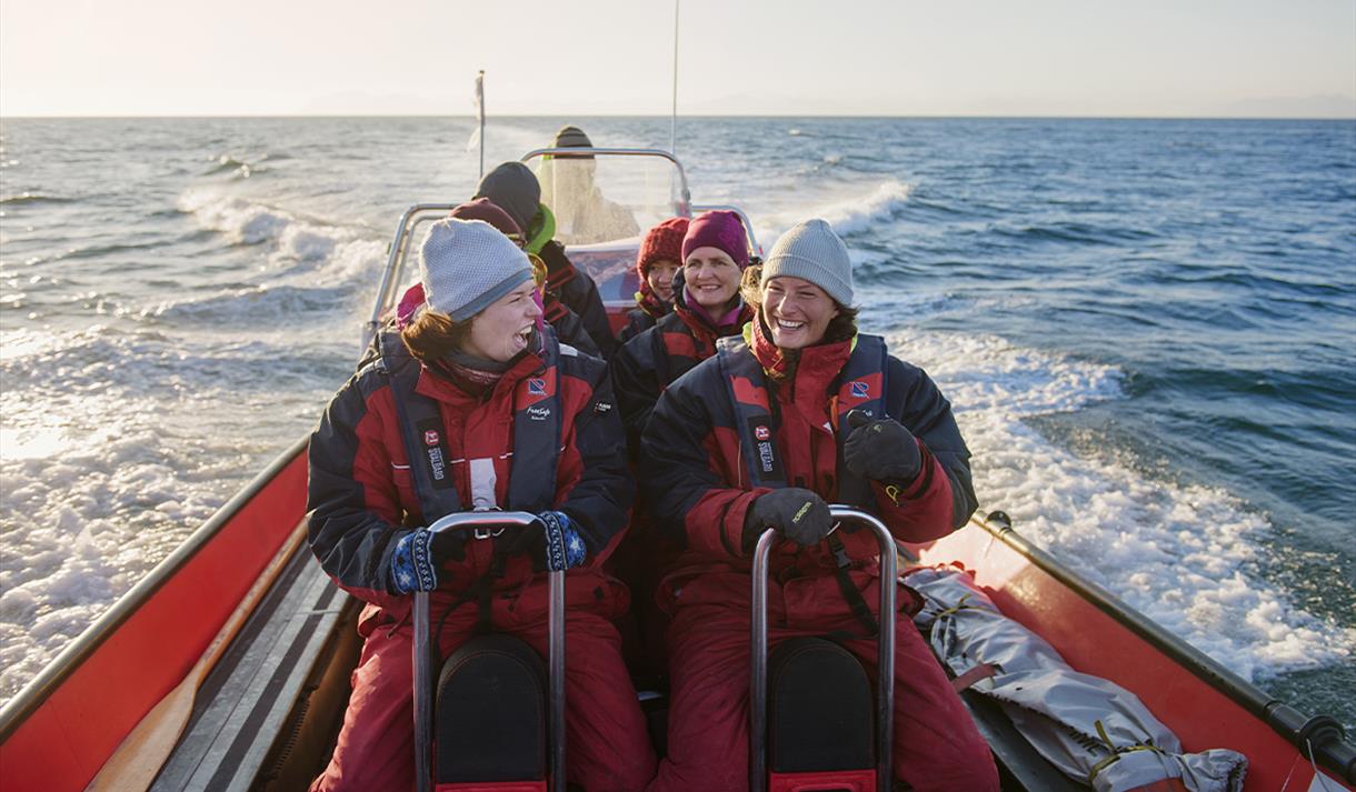 Bli med på en spennende tur med ribbåt som kombinerer opplevelsen av fugle- og dyreliv med øyas rike kulturhistorie. Guiden din henter deg på hotellet og kjører deg ned til vårt ekspedisjonssenter. Her blir du utstyrt med flytedress og goggles, før vi fortsetter ned til havna.