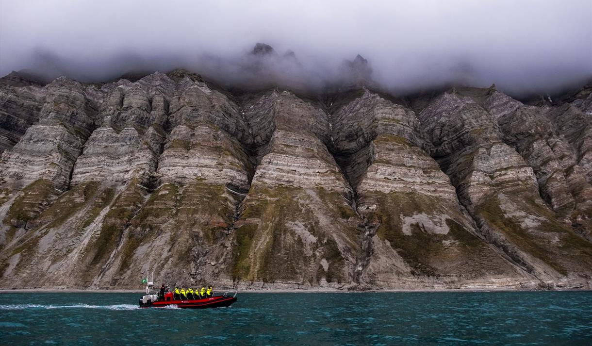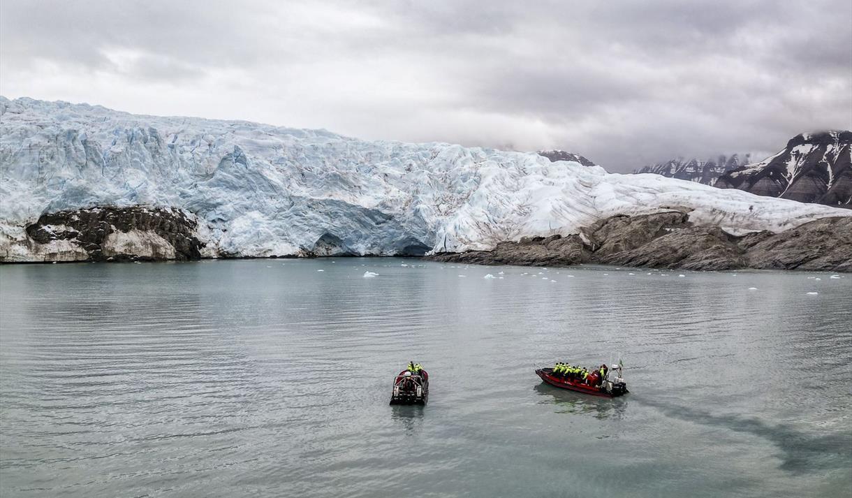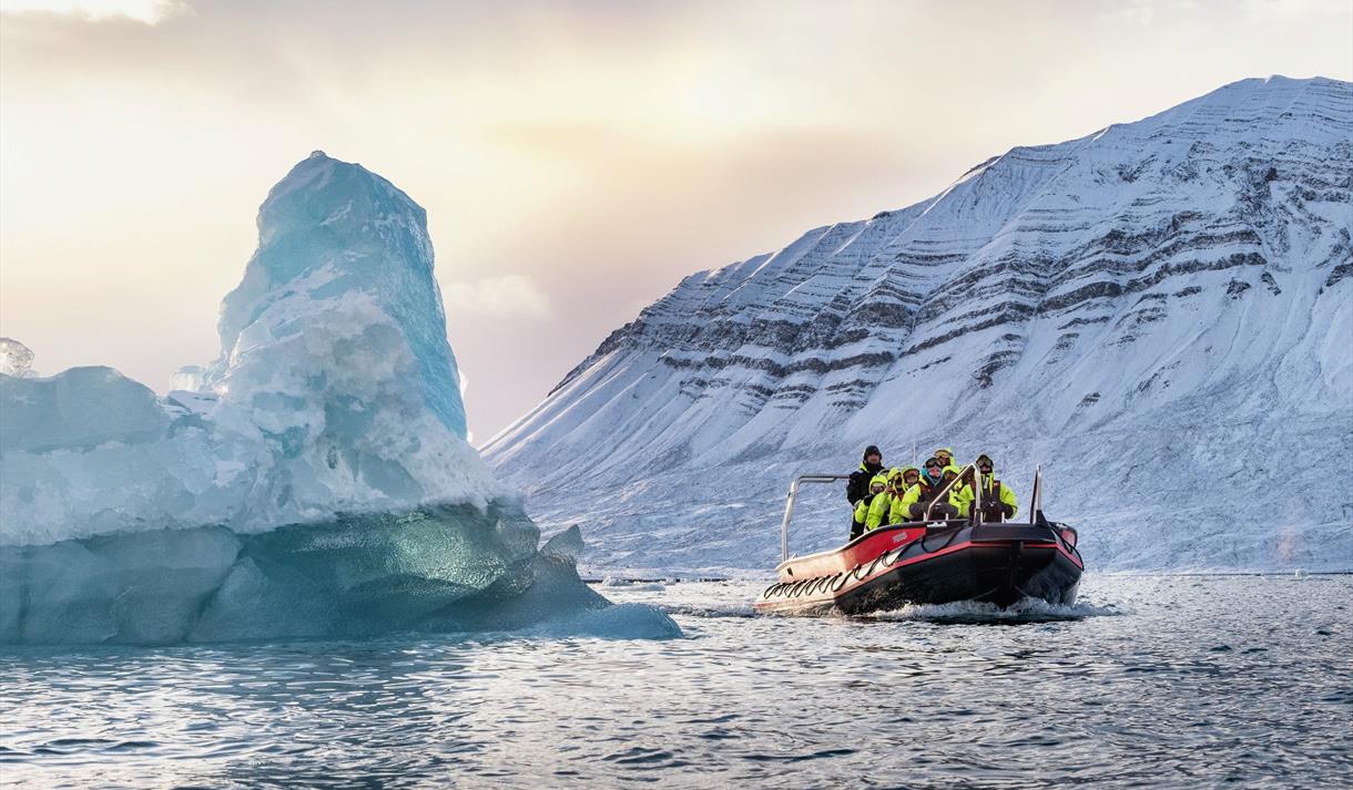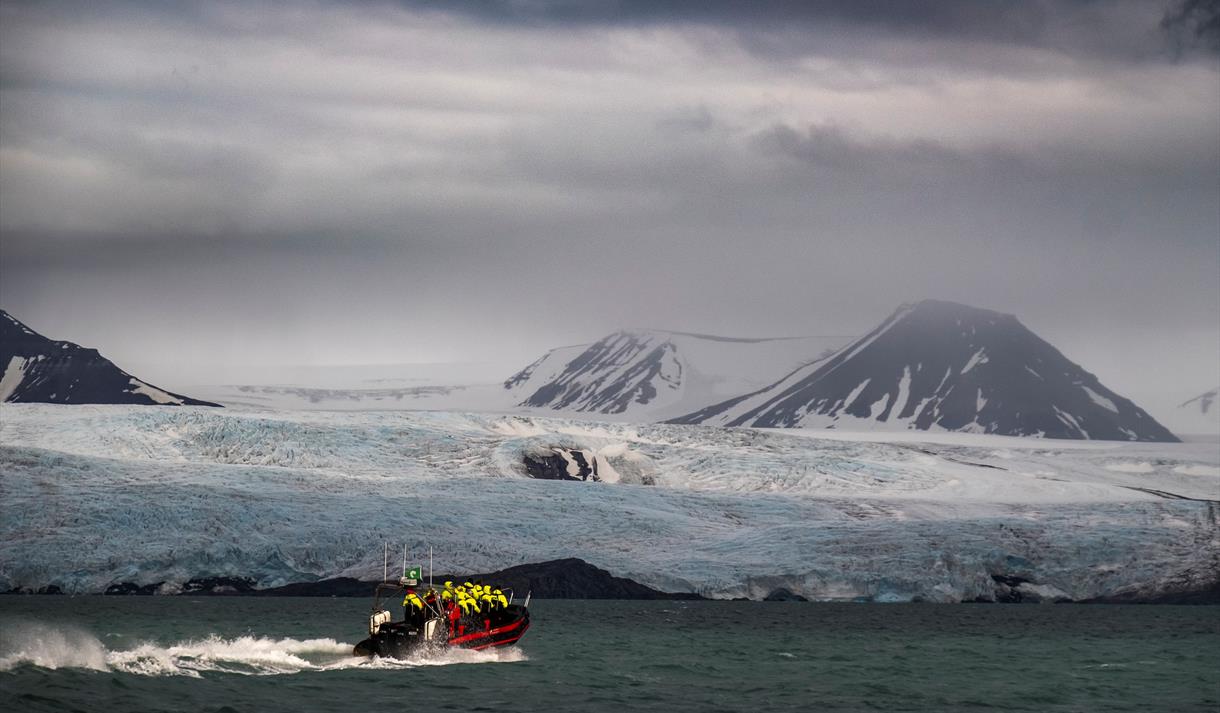 Vi kjører ut med RIB til Billefjorden og Nordenskiöldbreen i naturskjønne og historiske omgivelser på Svalbard.