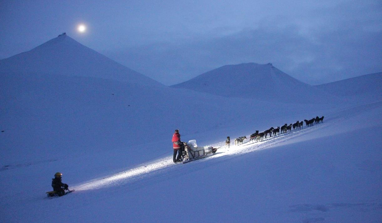 Er vi heldige ser vi det magiske nordlyset som danser over himmelen mens vi lydløst glir gjennom polarnatten. Svalbard er en arktisk ørken og vi vet aldri når den første snøen kommer. Vi kjører med slede eller vogn avhengig av snøforholdene. Hundene er ivrige uansett og gleder seg til vinteren som er på vei.