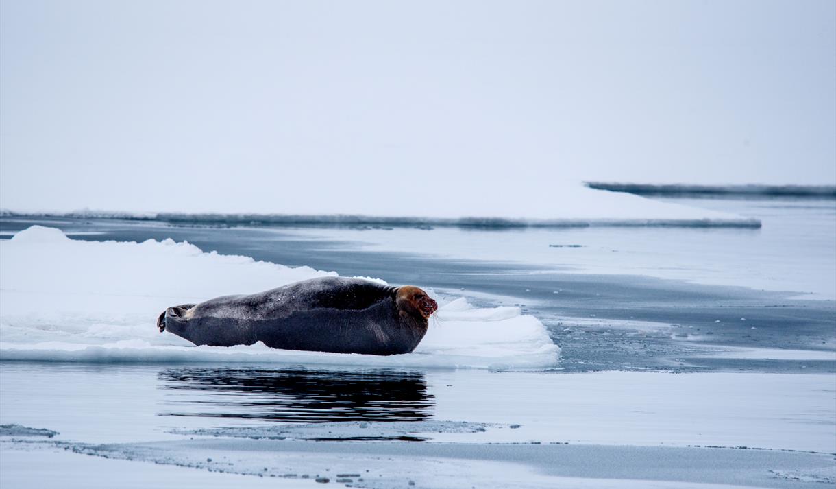 Ofte kan man se hvalrosser eller sel på havisen foran isbreene.
