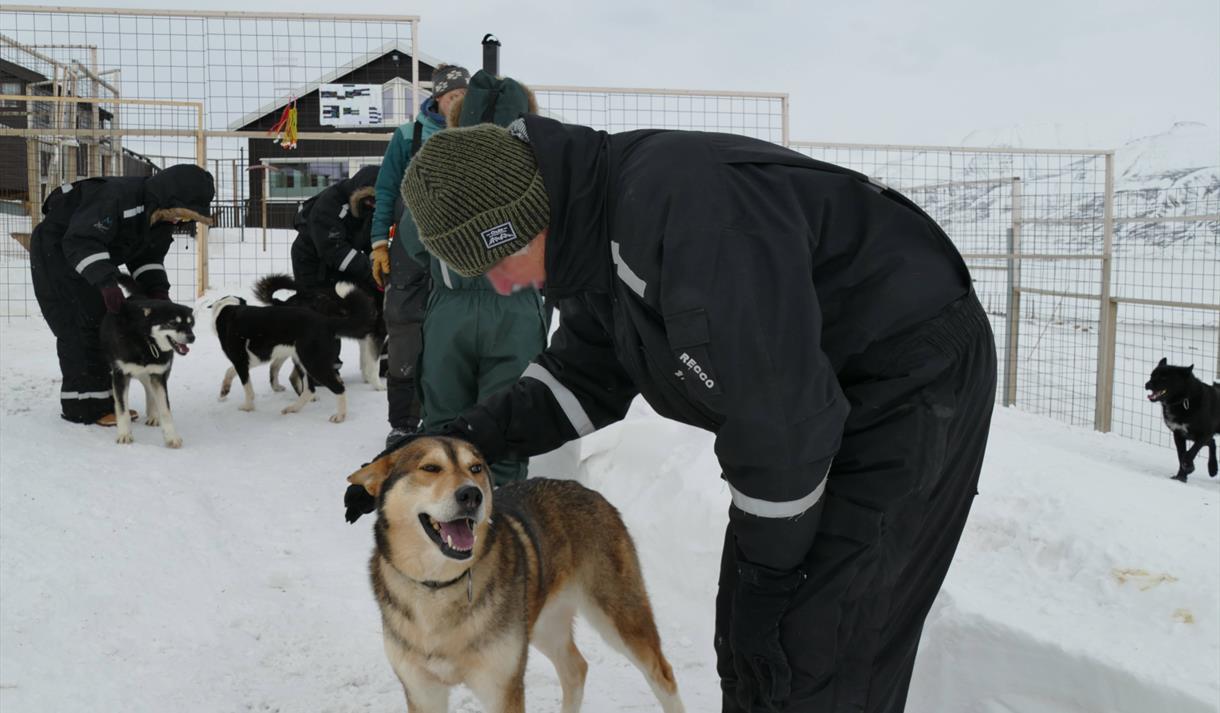 Deretter hilser vi med sledehunder og prater om livet ut i dalen. Maks gange 15 min.