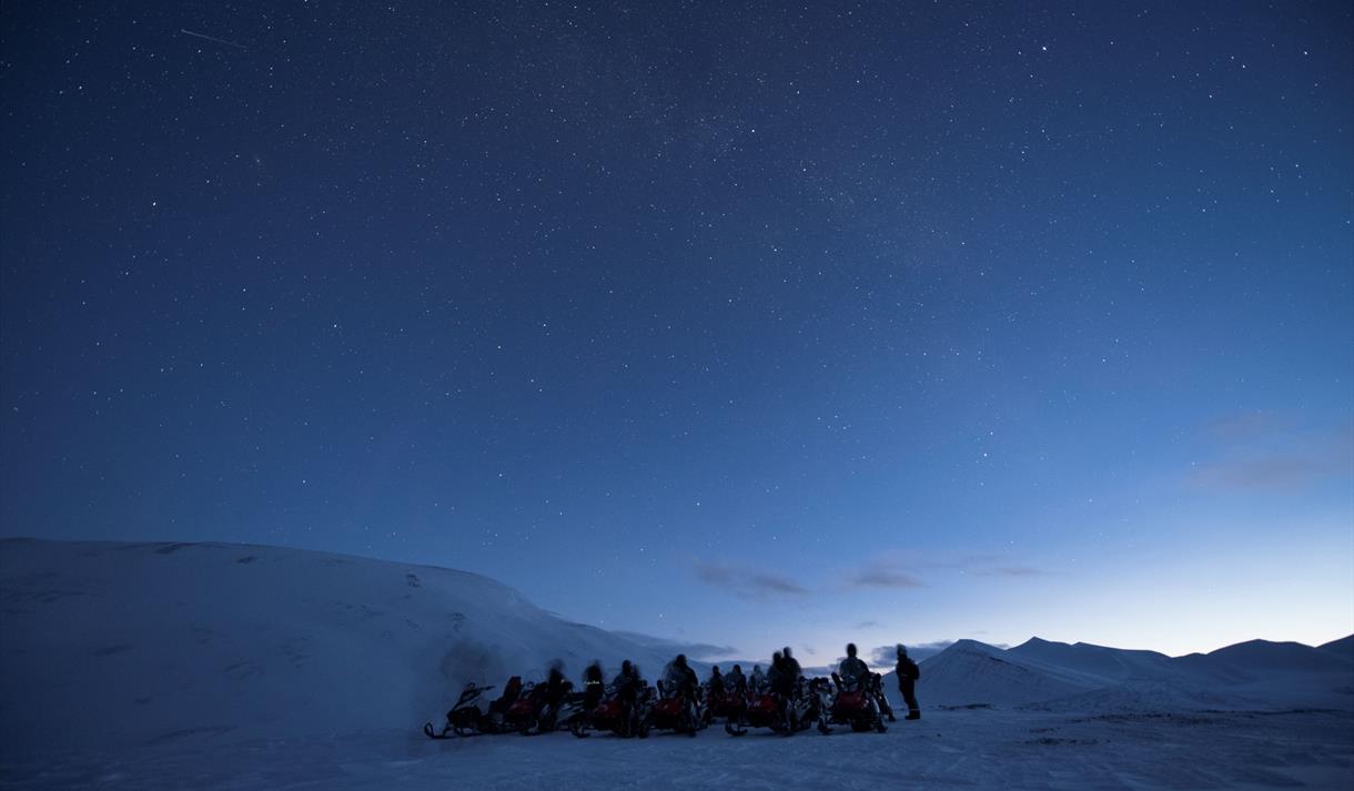 På denne tiden av året på Svalbard er sola langt nok under horisonten til å gi oss en unik mulighet til å kunne se både stjernehimmelen og nordlyset hele døgnet når forholdene ligger til rette for det.