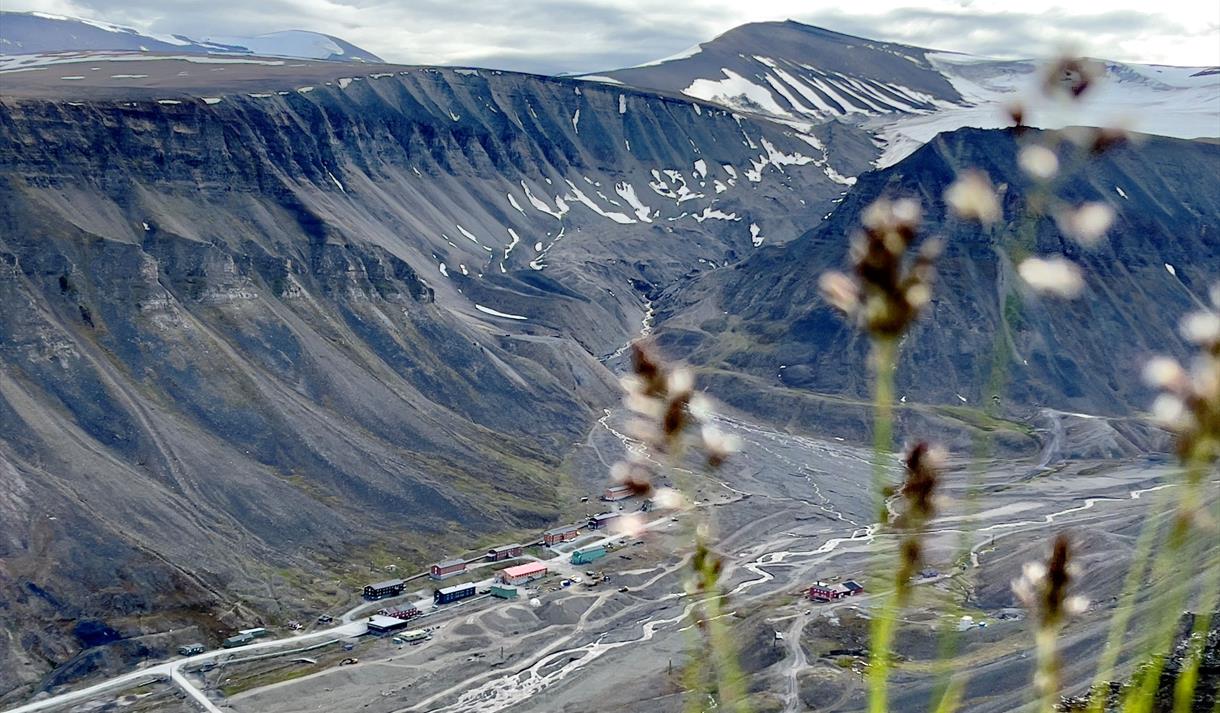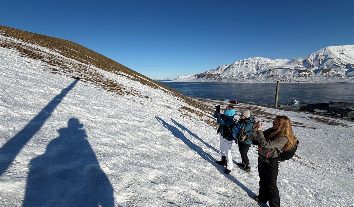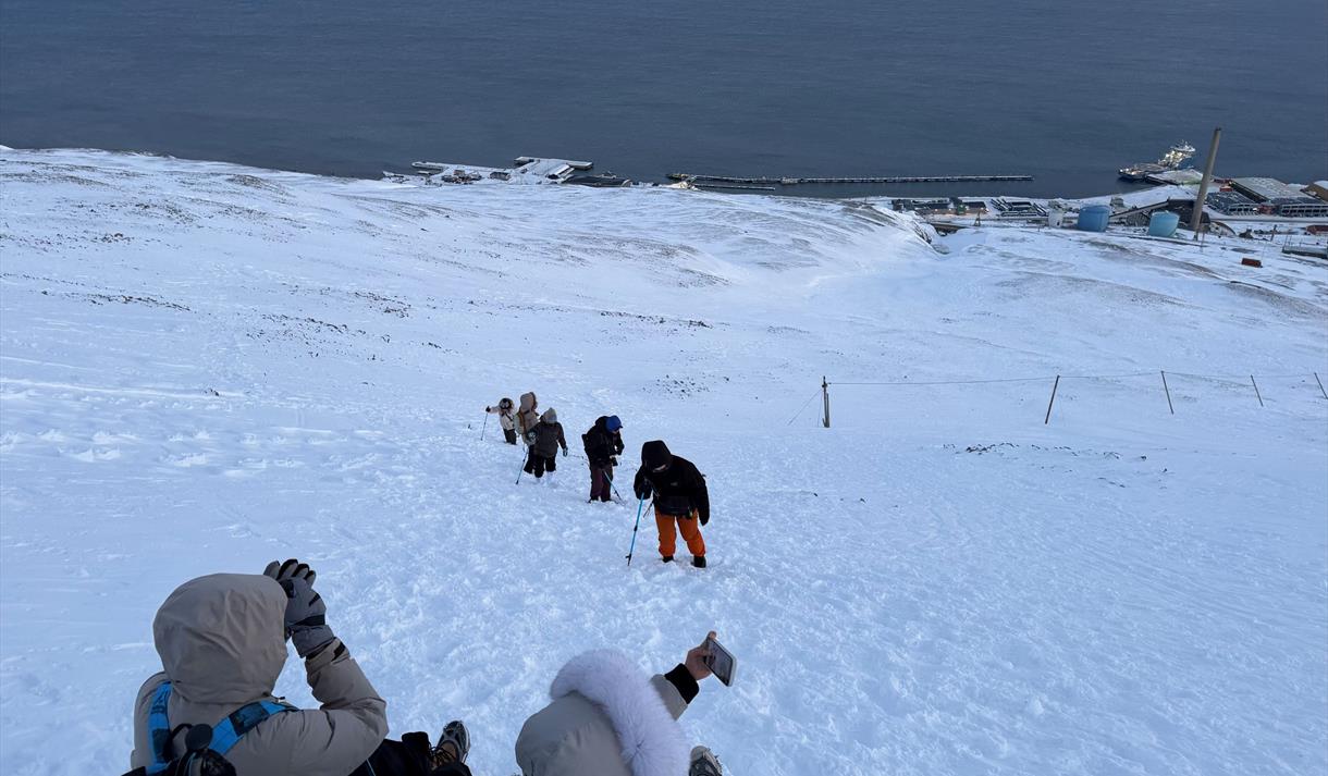Vi starter i Longyearbyen sentrum og går traseen opp til Platåfjellet på 424 m.o.h.