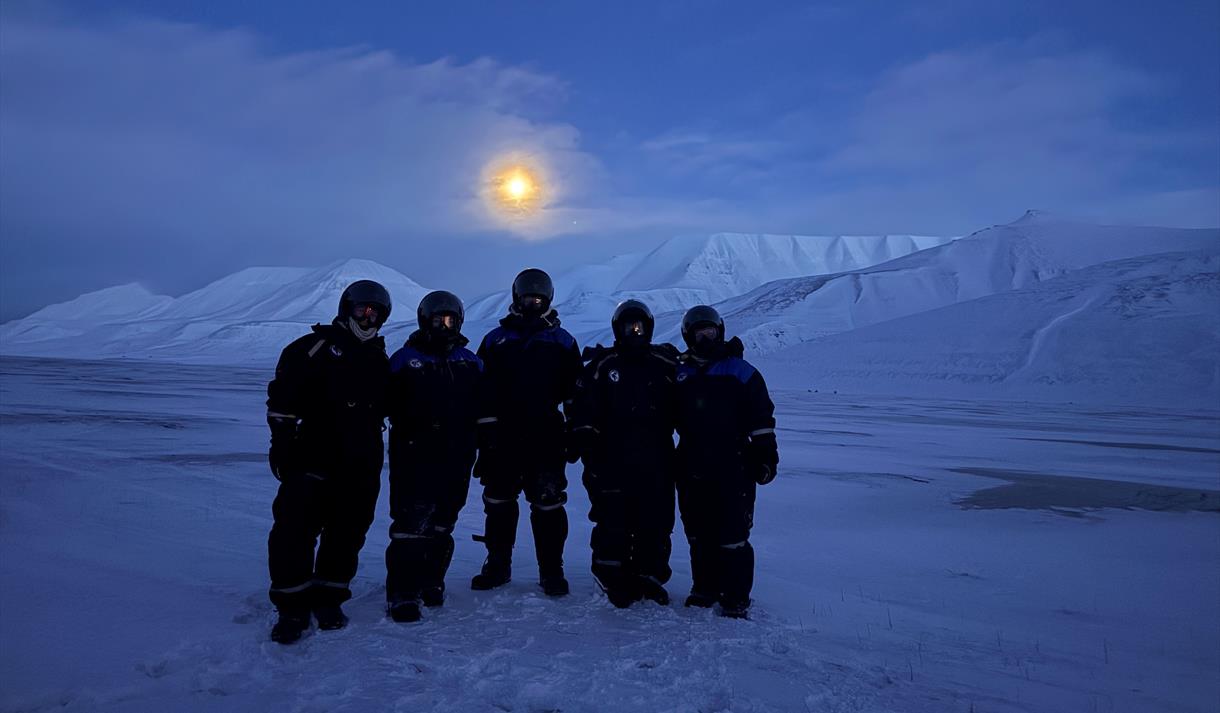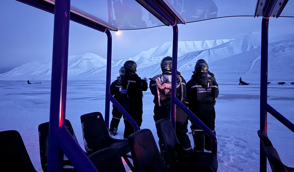Vi kjører ut Adventdalen forbi Jernsengen, mot Innerhytta, som er en strekning på rundt 15 km én vei.