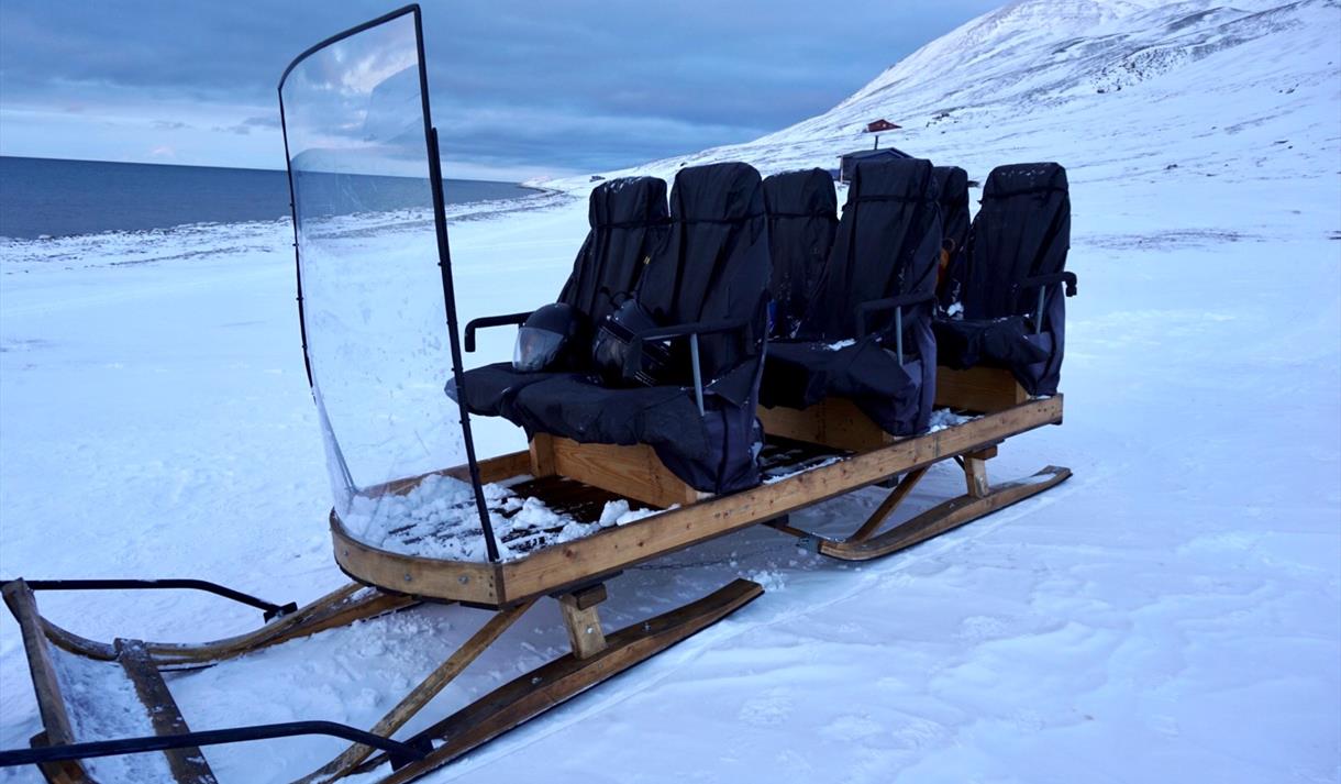 Bli med oss på en koselig tur med snøscooter hvor du ikke trenger å kjøre selv! Du tar plass på vår komfortable slede som er utstyrt med gode buss seter. Dette er den perfekte turen for deg som ønsker å nyte omgivelsene isteden for å måtte være fokusert på å kjøre selv. Turen er perfekt for deg med barn (minimum alder 6 år) og er også tilgjengelig for rullestolbrukere så lenge du klarer å sitte.