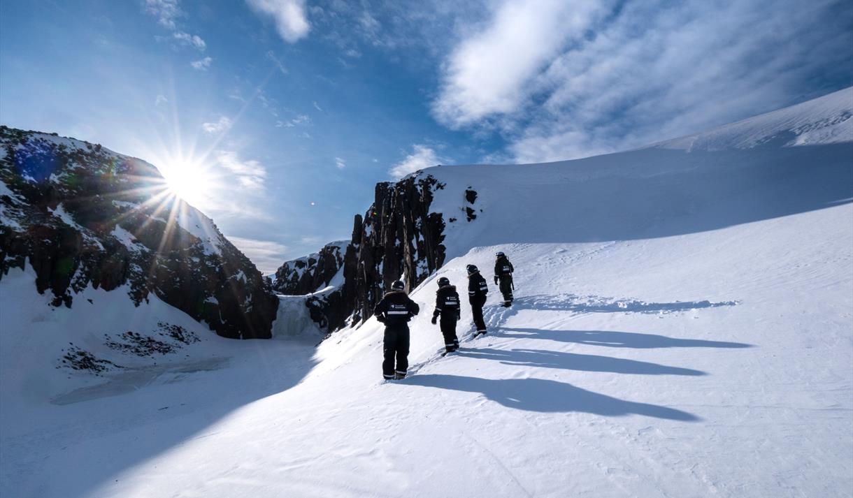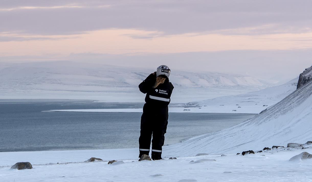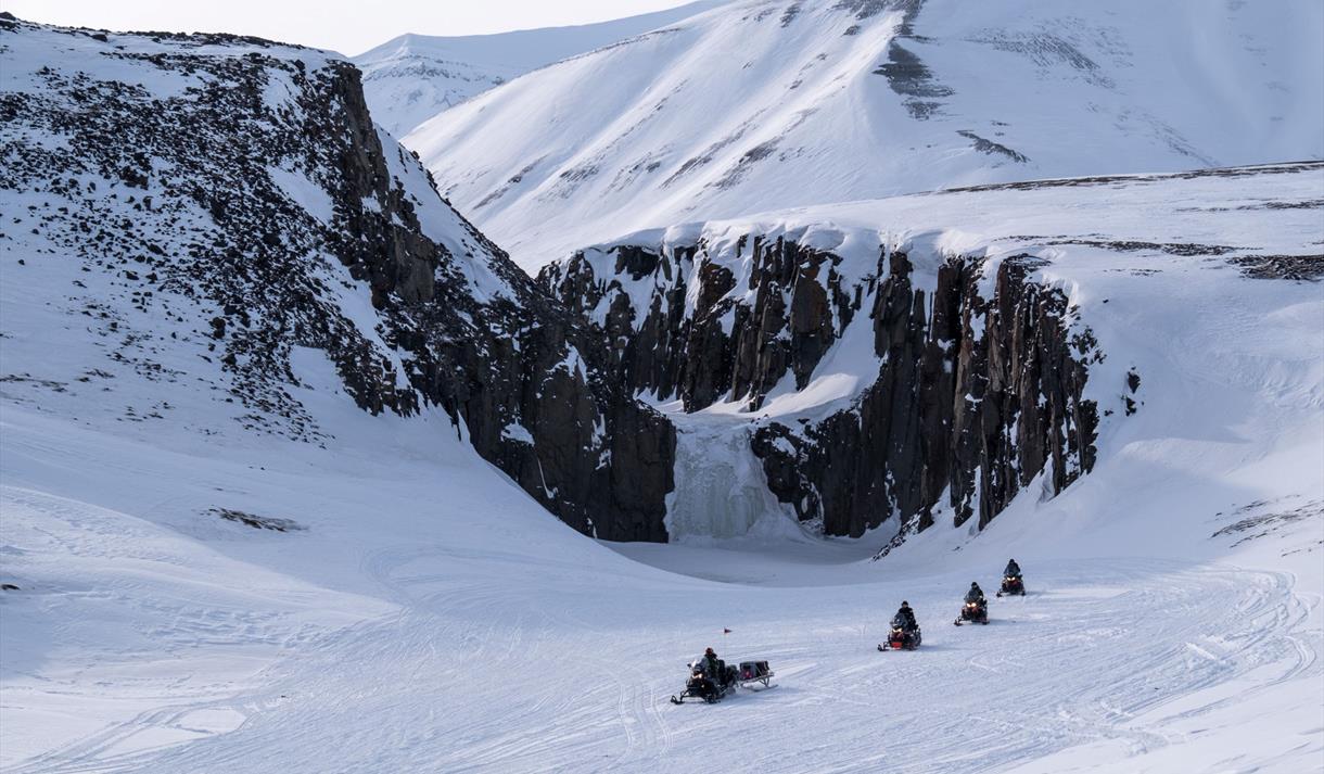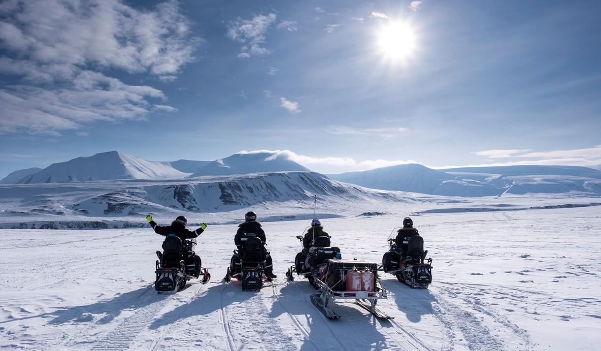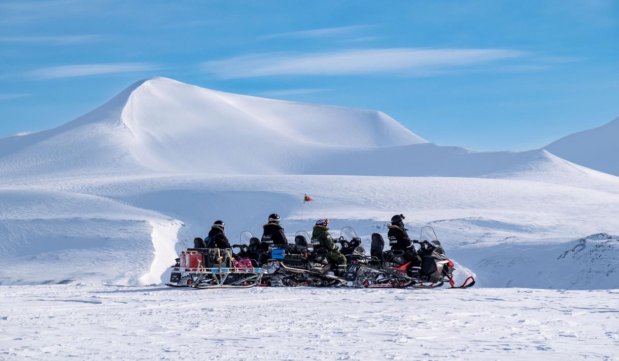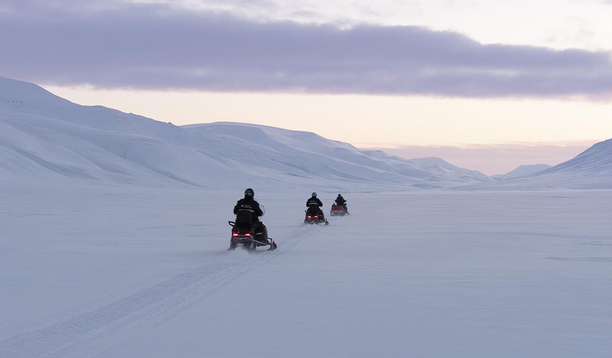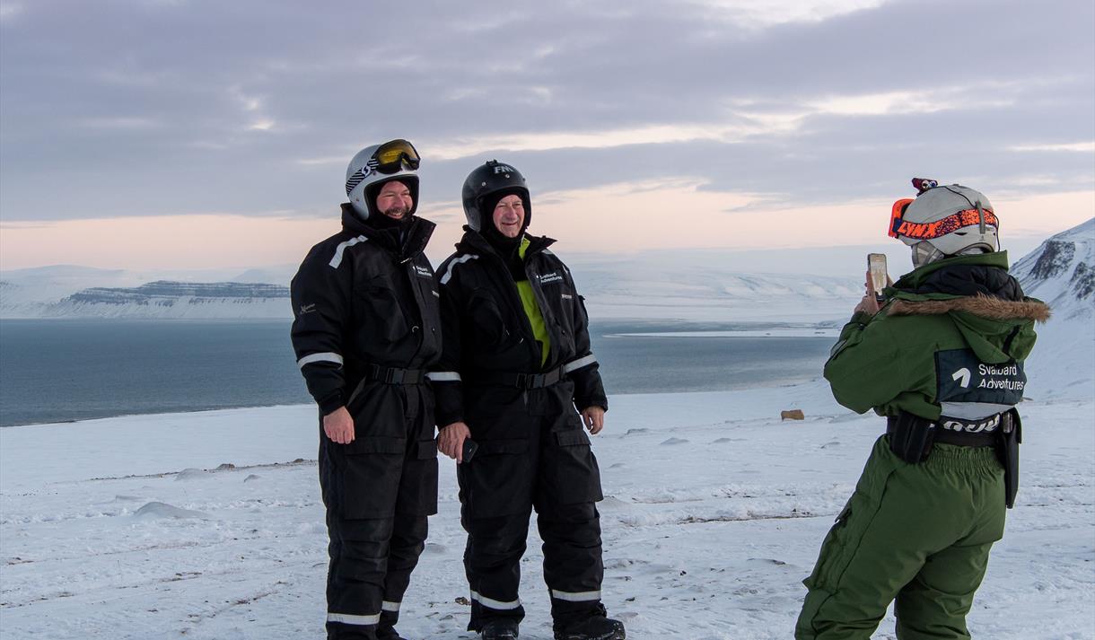 Opplev Svalbards ville, vakre og urørte fjorder på snøscooter. Fra Longyearbyen kjører vi mot Elveneset, et utkikkspunkt i enden av den spektakulære De Geerdalen. Her ser vi mot Sassenfjorden, Tempelfjorden og Billefjorden. På neset er vi omgitt av ville fjorder i et spennende fjellandskap. På den andre siden av fjorden kan vi skimte fjellet Templet, som har blitt kalt verdens vakreste fjell av lokale fangstmenn.