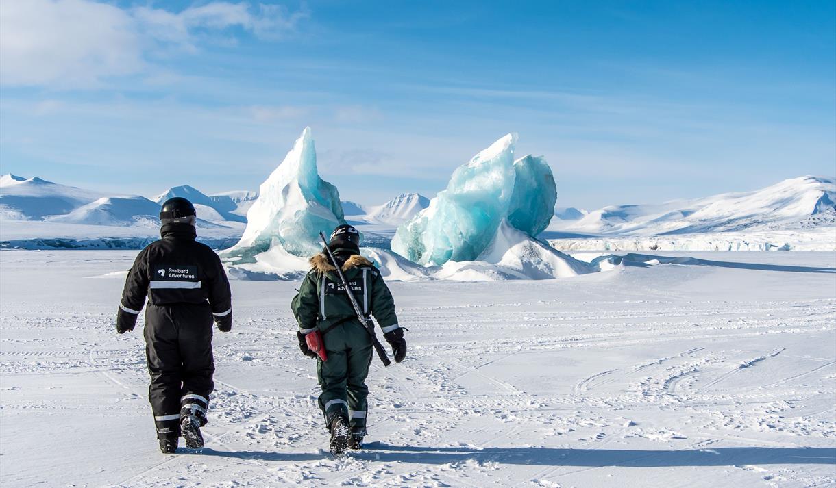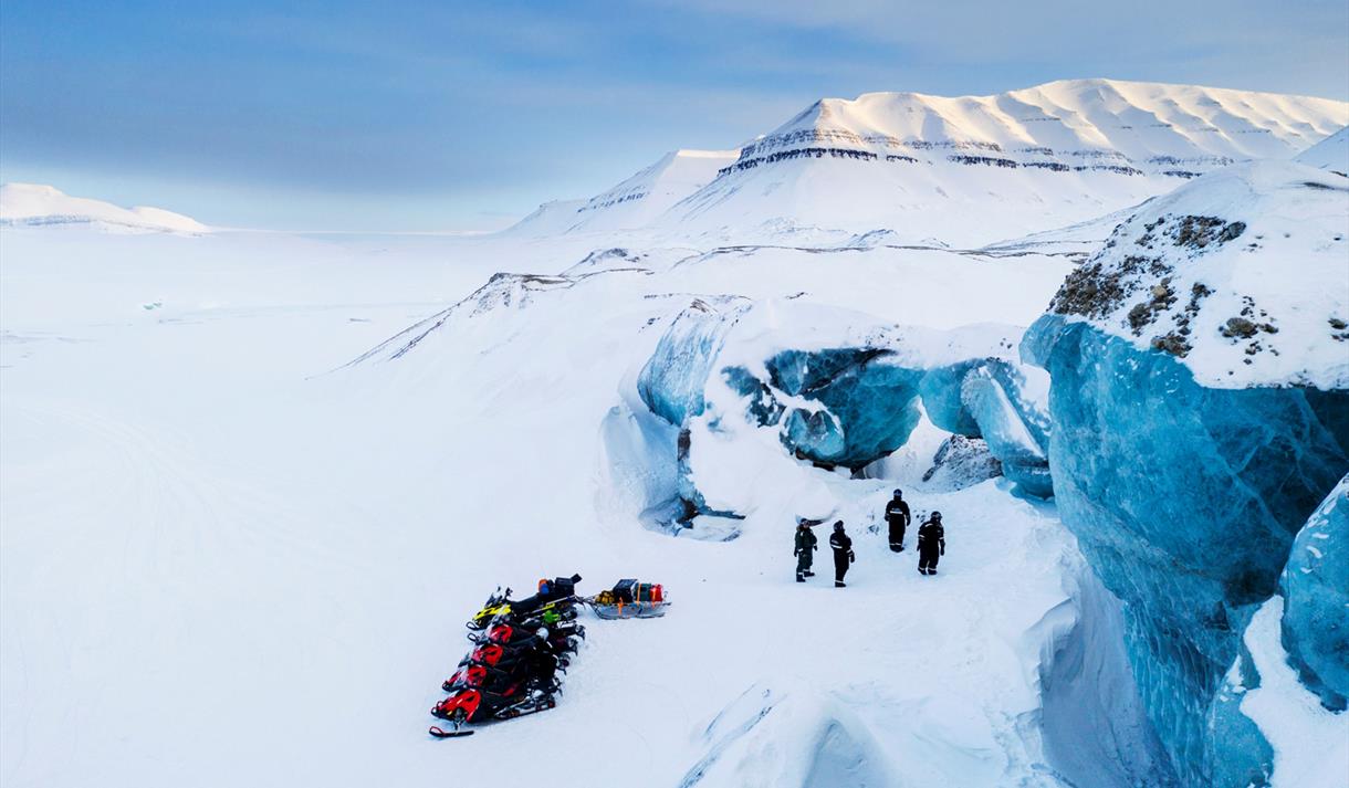 Vi starter turen østover fra Longyearbyen, gjennom Adventdalen på det frosne elvedeltaet. Videre tar vi oss gjennom Eskerdalen og ut i Sassendalen. Her ved dette «veikrysset» fortsetter vi østover, til vi kommer til bremassivene som strekker seg fra nord til sør på Spitsbergen. Etter en liten ekstra sikkerhetsbrief, bærer det gjennom en morene og opp på de snødekte breene som tar oss over til østkysten og Mohnbukta. Her utpå sjøisen har vi isbre på den ene siden, og Barents- og Edgeøya på den andre langt i det fjerne. Vi tar vi en varm lunsj mens vi kikker aktivt etter eventuelt dyreliv som kan befinne seg i området, før vi igjen setter oss på snøscooterne og begynner tilbake reisen mot Longyearbyen.