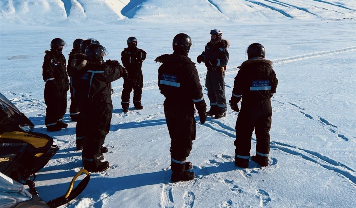 Deretter kjører vi tilbake samme vei og får oppleve naturen fra en ny vinkel – en perfekt og innholdsrik tur for alle som ønsker en kort, men minneverdig snøscooteropplevelse på Svalbard.