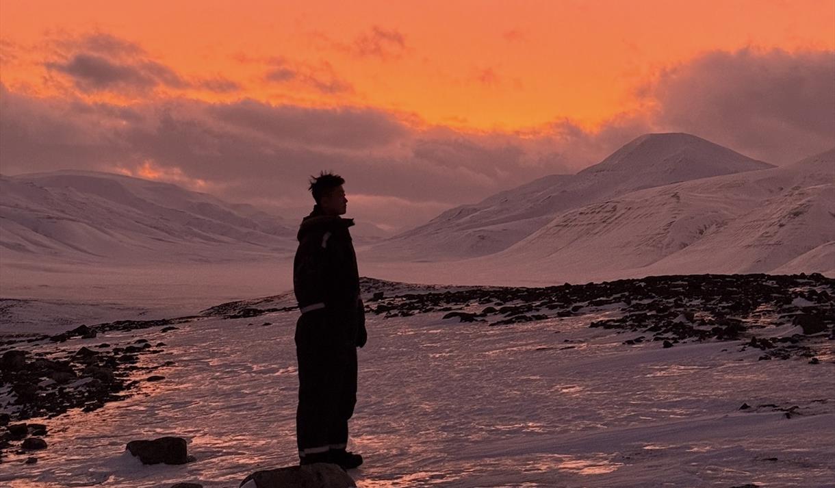 Fra Longyearbyen kjører vi gjennom Adventdalen og følger scootersporet mot Elveneset, et av områdets beste utsiktspunkter. Underveis får du oppleve Svalbards åpne landskap, snødekte fjell og vakre kontraster i lyset. Ruten er variert, men lettkjørt, noe som gjør turen ideell for både nybegynnere og familier.