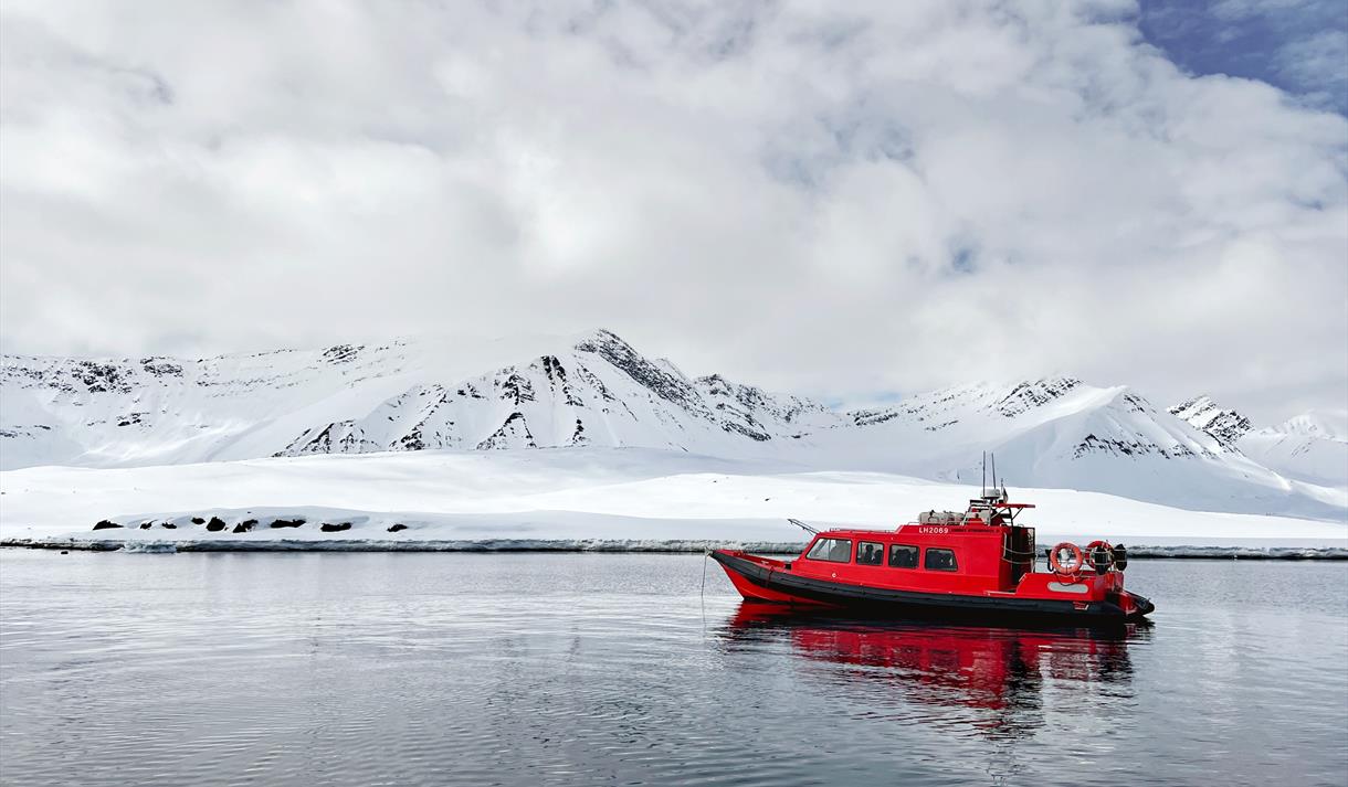 Bli med oss i vår varme, lukkede og raske RIB-båt mot den nordligste Isfjord-breen Sefströmbreen. Vår komfortable båt med plass til 12 passasjerer, inkludert toalett, tar oss langt nord, til det magiske området Ekmanfjord. Her finner vi den fantastiske øya Coraholmen, med sine røde steiner (som gir deg følelsen av å være på Mars) og mye drivis.